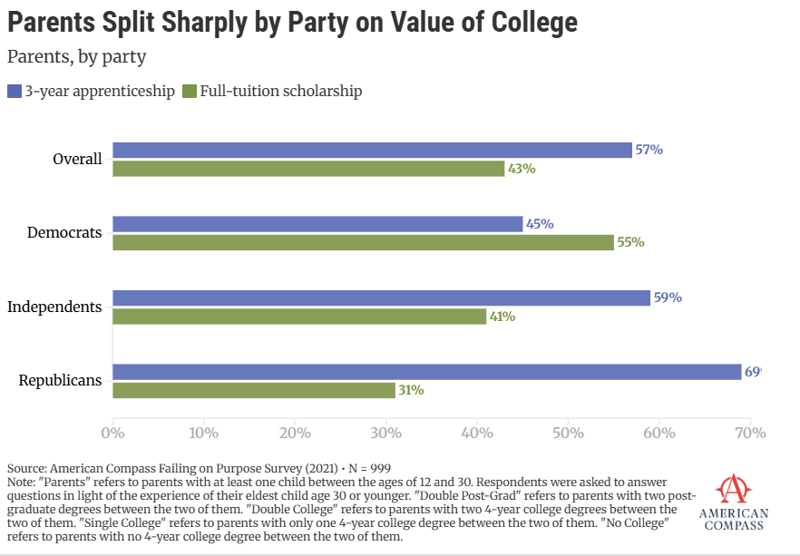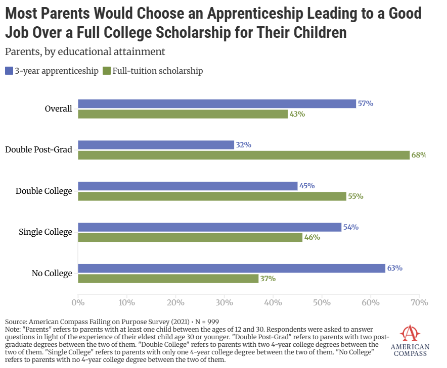 57% of American parents would prefer a three-year apprenticeship to a full college scholarship for their child.
