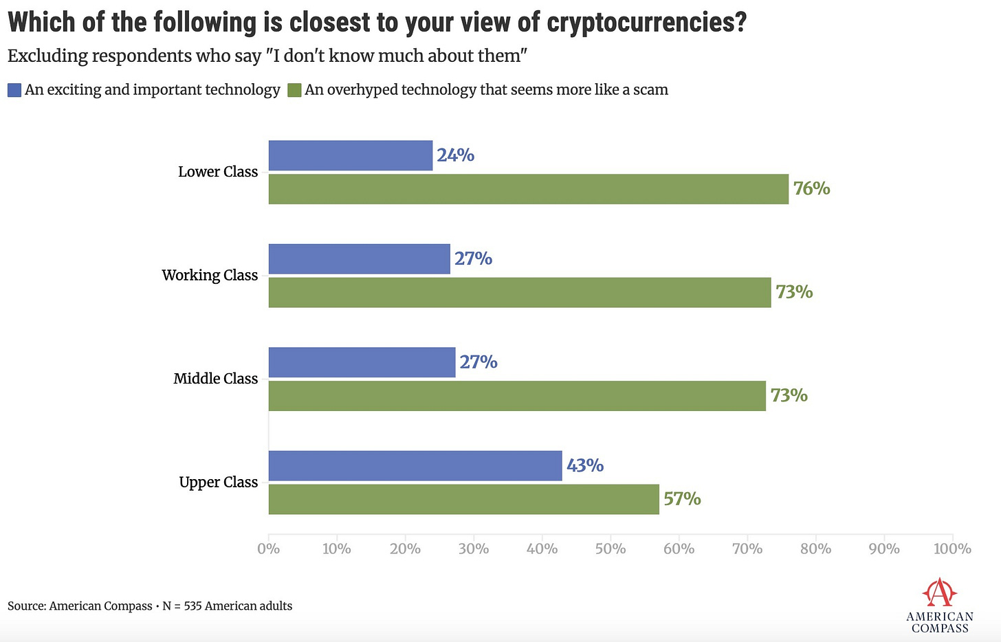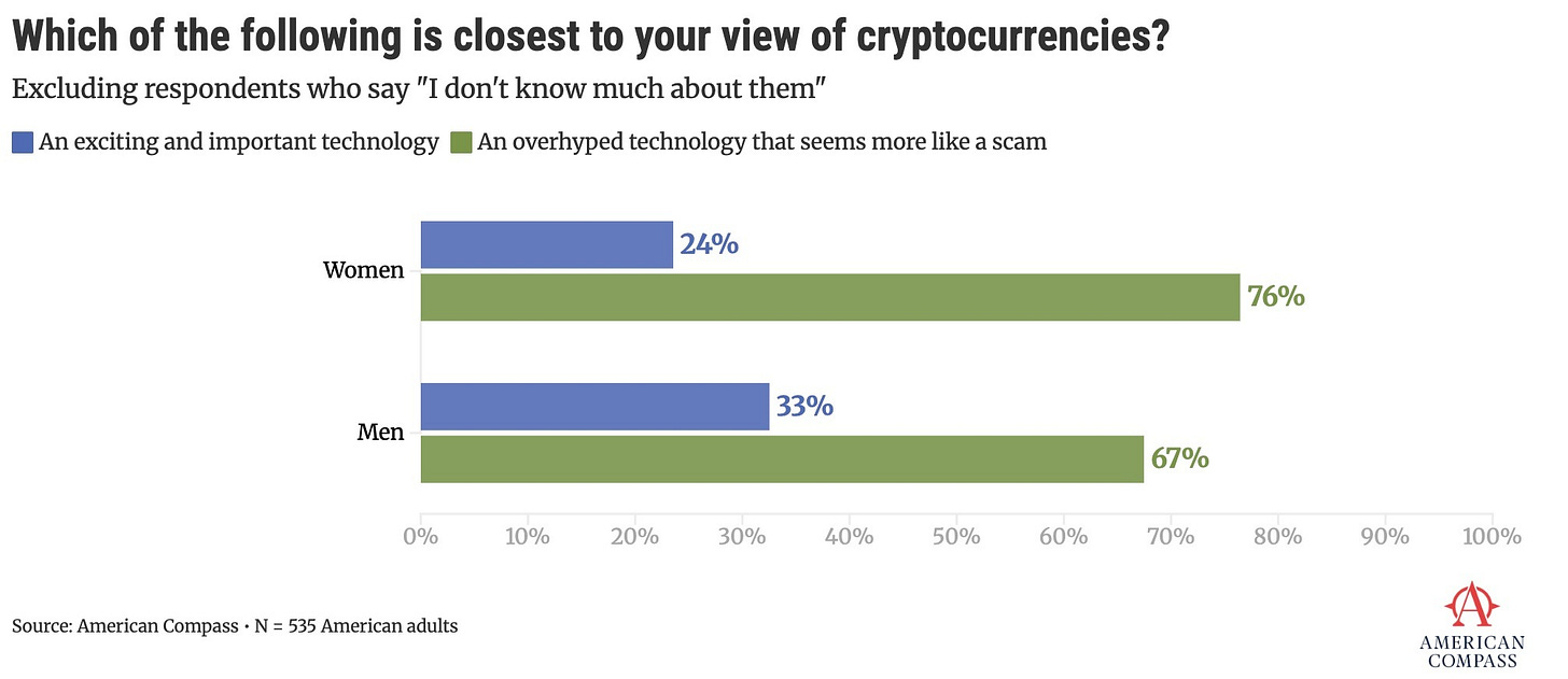 But by “we all,” Schumer must have meant his audience at a “Crypto4Harris” fundraiser, because the rest of America has a different answer. In a survey of 1,000 Americans, conducted last year in partnership with YouGov, American Compass put the question directly: